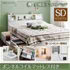 チェストベッド セミダブル 収納付 フラップ棚 照明 コンセント付 ボンネルコイルマットレス付き セミダブル ベッド