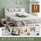 チェストベッド ダブル 収納付 フラップ棚 照明 コンセント付 ポケットコイルマットレス付き ダブル ベッド