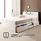 チェストベッド シングル 収納付 フラップ棚 照明 コンセント付 国産ポケットコイルマットレス付き シングル ベッド