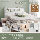 | チェストベッド セミダブル 収納付 フラップ棚 照明 コンセント付 国産ポケットコイルマットレス付き セミダブル ベッド |