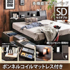 収納 ベッド セミダブル チェストベッド フラップ棚・照明・コンセント付多機能 ボンネルコイルマットレス付き セミダブル ベッド