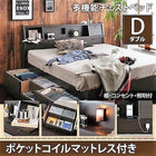 収納 ベッド ダブル チェストベッド フラップ棚・照明・コンセント付多機能 ポケットコイルマットレス付き ダブル ベッド