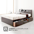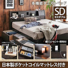 収納 ベッド セミダブル チェストベッド フラップ棚・照明・コンセント付多機能 国産ポケットコイルマットレス付き セミダブル ベッド