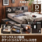 収納 ベッド ダブル チェストベッド フラップ棚・照明・コンセント付多機能 天然ラテックス入り国産ポケットコイルマットレス付き ダブル ベッド