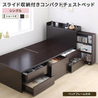 ベッド本体 【サイズ】 セミシングル:(約)幅83 X 長さ200 X 高さ87cm シングル:(約)幅98 X 長さ200 X 高さ87cm 床板までの高さ:(約)40cm 【収納部有効内寸】 スライド収納棚:(約)幅44 X 奥行き15 X 高さ20cm X 3段 深型引き出し:(約)幅51 X 奥行き38 X 深さ33cm X 1杯 浅型引き出し:(約)幅51 X 奥行き38 X 深さ13cm X 4杯 長物収納 セミシングル:(約)幅35 X 長さ178 X 深さ37cm シングル:(約)幅50 X 長さ178 X 深さ37cm 【材質】化粧繊維板 【カラー】ホワイト、ダークブラウン 【機能】2口コンセント(1500W)