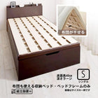 組立設置付 国産頑丈大容量跳ね上げ収納ベッド ベッドフレームのみ 縦開き セミシングル 深さレギュラー