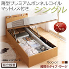 ベッド 跳ね上げ シングル 収納 薄型プレミアムボンネルコイル 縦開き 深さラージ 組立設置付