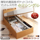跳ね上げ 収納ベッド 組立設置付 国産 薄型抗菌国産ポケットコイルマットレス付き 横開き セミシングル 深さグランド