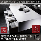衣装ケースも入る大容量デザイン収納ベッド 薄型スタンダードポケットコイルマットレス付き 引き出しなし シングル