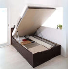 組立設置付 国産頑丈大容量跳ね上げ収納ベッド 薄型抗菌国産ポケットコイルマットレス付き 縦開き セミシングル 深さグランド