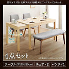 スライド伸縮 ダイニングテーブルセット 4点セット テーブル+チェア2脚+ベンチ1脚 W135-235 回転イス付き 北欧