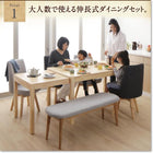 | スライド伸縮 ダイニングテーブルセット 6点セット テーブル+チェア4脚+ベンチ1脚 W135-235 |