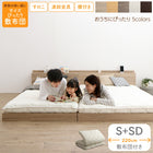 ベッド ロータイプ 連結 すのこ 天然木 ベッドフレーム ファミリーベッド 木製 宮付き コンセント付 すのこベッド 敷布団付き WK220(S+SD)