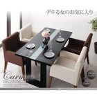A modern style for a stylish dining room. The glass table with sparkling monotone colors creates a stylish and modern atmosphere.