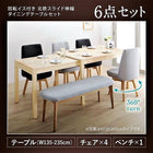 Sliding and extending dining table set, 6-piece set, table + 4 chairs + 1 bench, W135-235, with swivel chair, Nordic