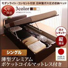 Storage bed, gas-pressure lift-up, thin premium pocket coil, vertical opening, single, regular depth