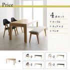 Dining 4-piece set (table + 2 chairs + 1 bench) W135-235 Nordic sliding extension table