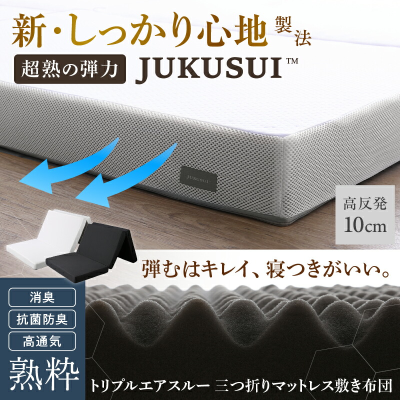 High-resilience mattress, double, futon, compact, foldable, 3-fold, extra thick, firm, antibacterial, odor-resistant, dust mite-resistant, 10cm thick