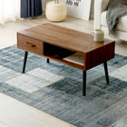 天板:MDFウォールナット突板(UV塗装)、脚:樺材(ラッカー塗装)